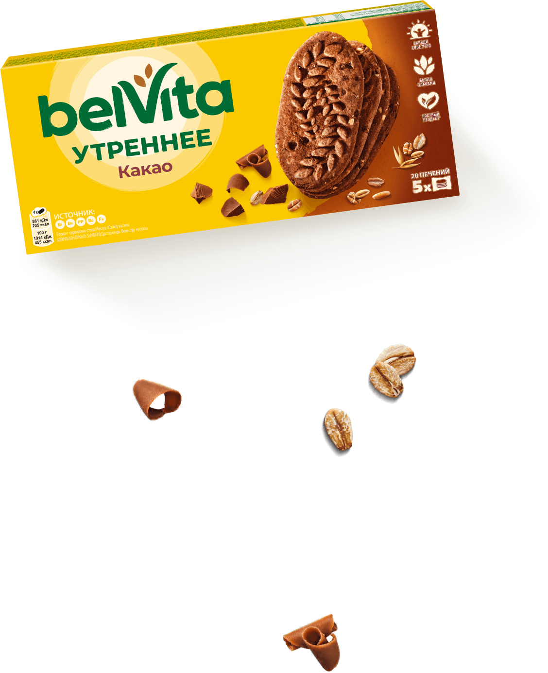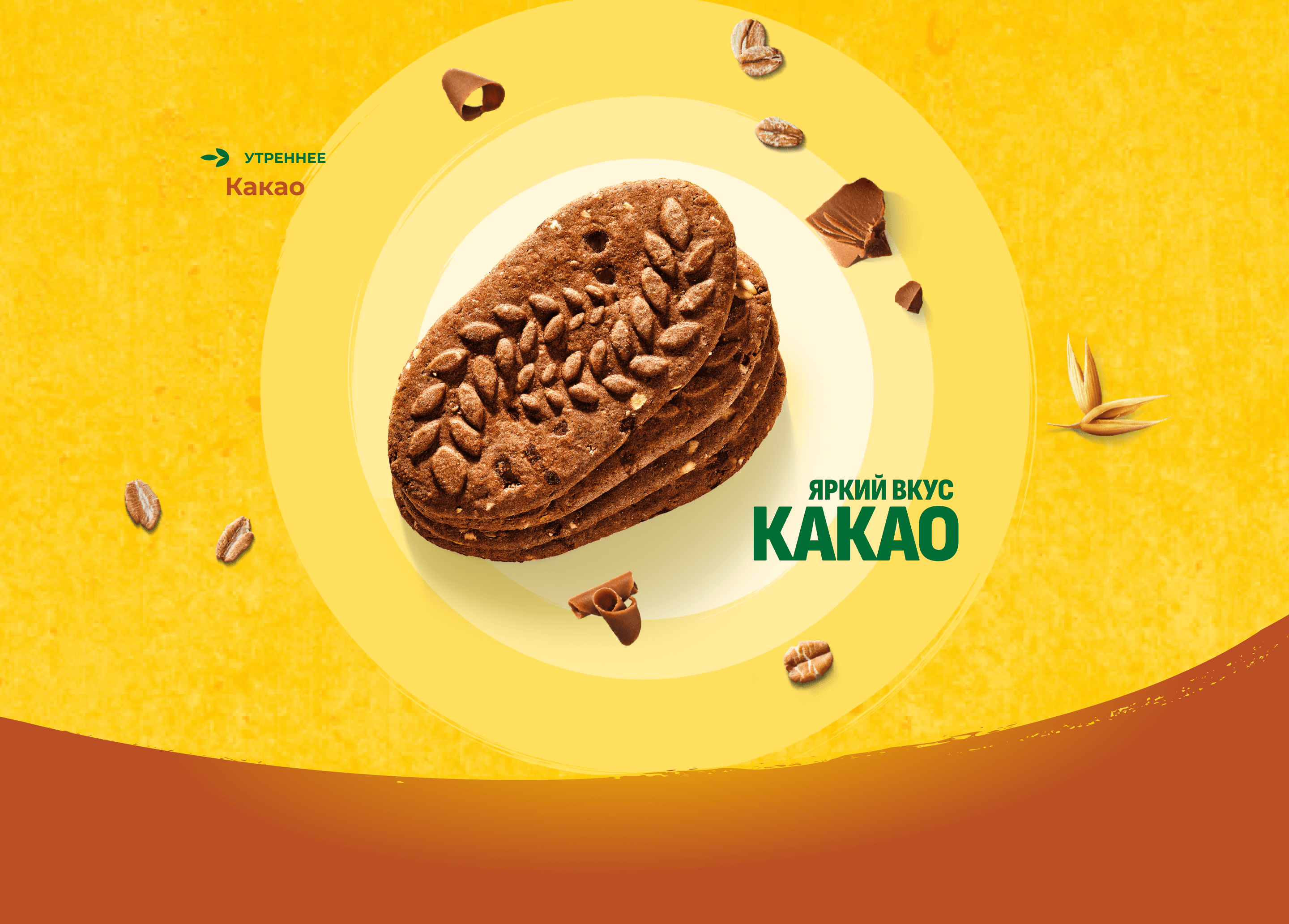 Мука 56% (ПШЕНИЧНАЯ, ЯЧМЕННАЯ цельнозерновая), сахар, масло рапсовое, вода, хлопья ОВСЯНЫЕ 4%, какао-порошок 3%, отруби ПШЕНИЧНЫЕ 2,2%, разрыхлители (гидрокарбонат аммония, гидрокарбонат натрия, дигидропирофосфат натрия), жир растительный (масло пальмоядровое), эмульгатор (лецитин СОЕВЫЙ), соль, регуляторы кислотности (карбонат калия, кислота лимонная), ароматизаторы, витаминно-минеральный комплекс (витамин В1, витамин В2, витамин В6, витамин РР, витамин Вс, железо). МОЖЕТ СОДЕРЖАТЬ СЛЕДЫ, ЯИЦ, МОЛОЧНЫХ ПРОДУКТОВ И ОРЕХОВ.
